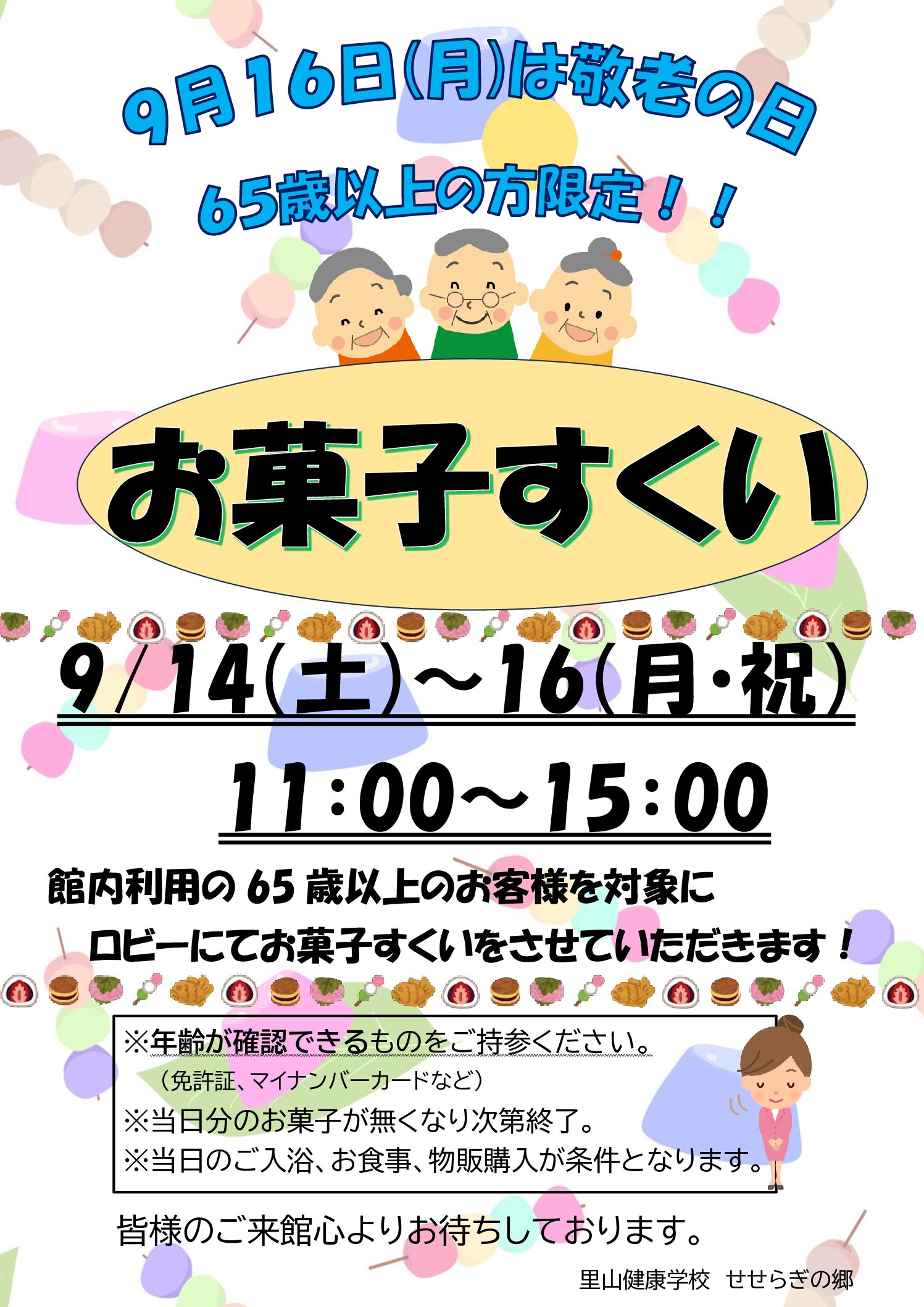 9/16(月・祝)は敬老の日ということで、9/14~16 11:00~15:00で65歳以上の方を対象としたイベントを開催いたします。