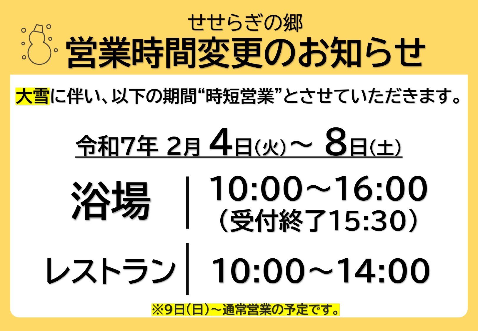 ※降雪状況により、時短営業期間を1日延長(6日→7日)としました。